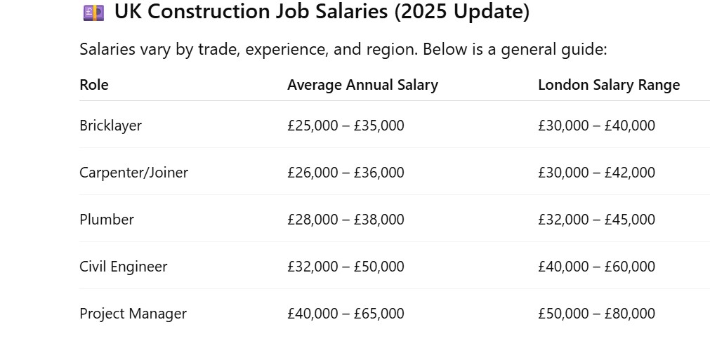 Tip: Skilled trades often require a CSCS card (Construction Skills Certification Scheme). Many employers will guide you through this after hiring.